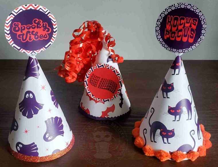 What started as a single Jack O’Lantern party hat quickly spiraled into a full-blown design obsession. One idea turned into three. Three turned into five. Before long, I had an entire collection of hand-crafted party hats staring back at me – each one begging for its moment.